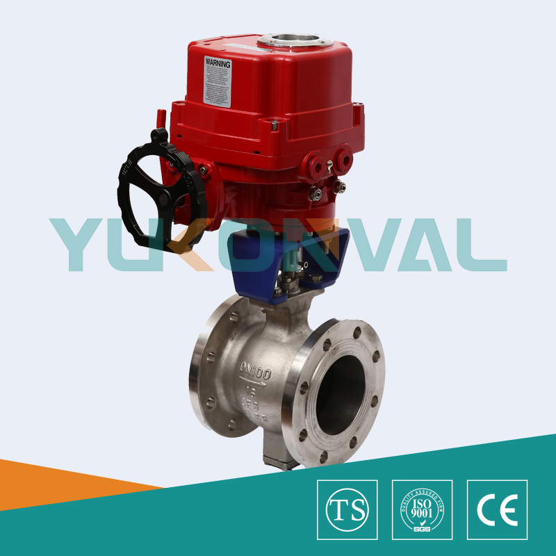 1、電動V型球閥的V型切口的球芯與金屬閥座之前具有剪切作用,特別適用于含纖維、微小固體顆粒、料漿等介質。